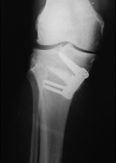 Nei casi in cui vi sia una severa degenerazione della cartilagine di una sola zona del ginocchio (in genere quella interna) e vi sia associata anche una deformazione in varismo della gamba, in un paziente piuttosto giovane (in genere sotto i 60 anni), vi e' l'indicazione ad effettuare l'intervento di osteotomia della tibia c.d. di "valgizzazione". Tale intervento ha lo scopo ultimo di spostare il carico sul ginocchio dalla zona malata mediale o interna a quella sana laterale. Si tratta quindi, in definitiva, di un intervento "biomeccanico" ovvero un intervento che pur non utilizzando protesi artificiali o altri sistemi di rivestimento biologici, riesce comunque ad apportare un significativo miglioramento sia sul dolore sia sulla funzionalita' del ginocchio.